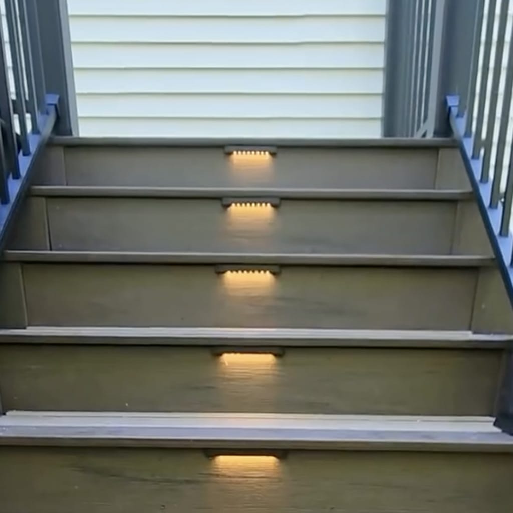 Our professional-grade A1001 6″ recessed LED low voltage step riser lights are easy to install. They are designed to fit under a ½″ tread overhang. These 6″ step riser lights have double the light output of the 3″ step riser to truly highlight any step. The A1001 is a perfect addition to illuminate the step riser and tread of your deck. All hardware is included.