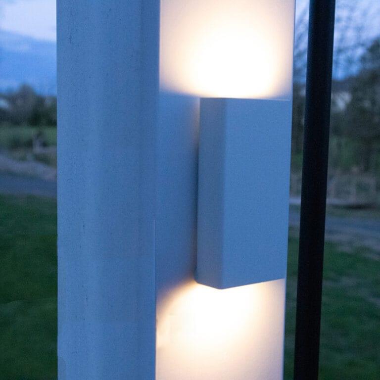 A low profile post / wall sconce light with color changing capability that can showcase your home and outdoor space. The top and bottom of this light can be controlled independently. This elegant, sharp, smooth design was created to help you light up your home and improve the outdoor lighting on your property or within outdoor structures.